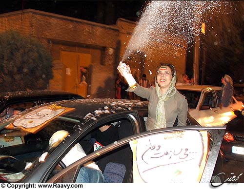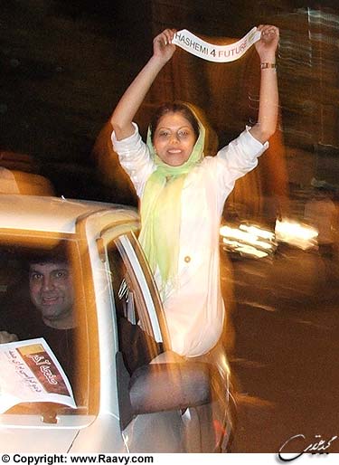 هر چه به نیمه شب نزدیک تر میشویم معیینیها کم کم میروند و هاشمیها پر رنگتر در صحنه حاضر میشوند. عدهای از نوجوانها که روی جلیقههای خبرنگاریشان نوشته شده است: "همه با هم کار، ستاد همراهان هاشمی (شهرک غرب)" برچسبهای "هاشمی" را بر ماشینها میچسبانند. با آنها صحبت کردم. دلیل این کارشان را پرسیدم. گفتم از کجا آمدهاند و چقدر گرفتهاند. از پیروزی آورده بودندشان شهرک غرب! قسم میخورد که پول نمیگیرند، ولی... صدای صحبتم با آنها اینجا است.